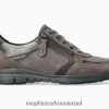 מפיסטו יאל | נשים נעלי סניקרור אפור עור אפור כהה. נעלי ספורט אופנתיות למראה קלות במיוחד, המוגדרת על ידי חתך מותאם דק. המדרס הניתן לניתוק, עם טכנולוגיית אוויר רך משולב, וסורבר ההלם, במדרון החיצוני, עוזרים למזער את ההשפעה על הליכה עדינה וללא מאמץ. נעל שרוך זו מבטיחה נוחות אופטימלית והתאמה מצוינת. בטנת העור מקדמת אקלים בריא בתוך הנעל.